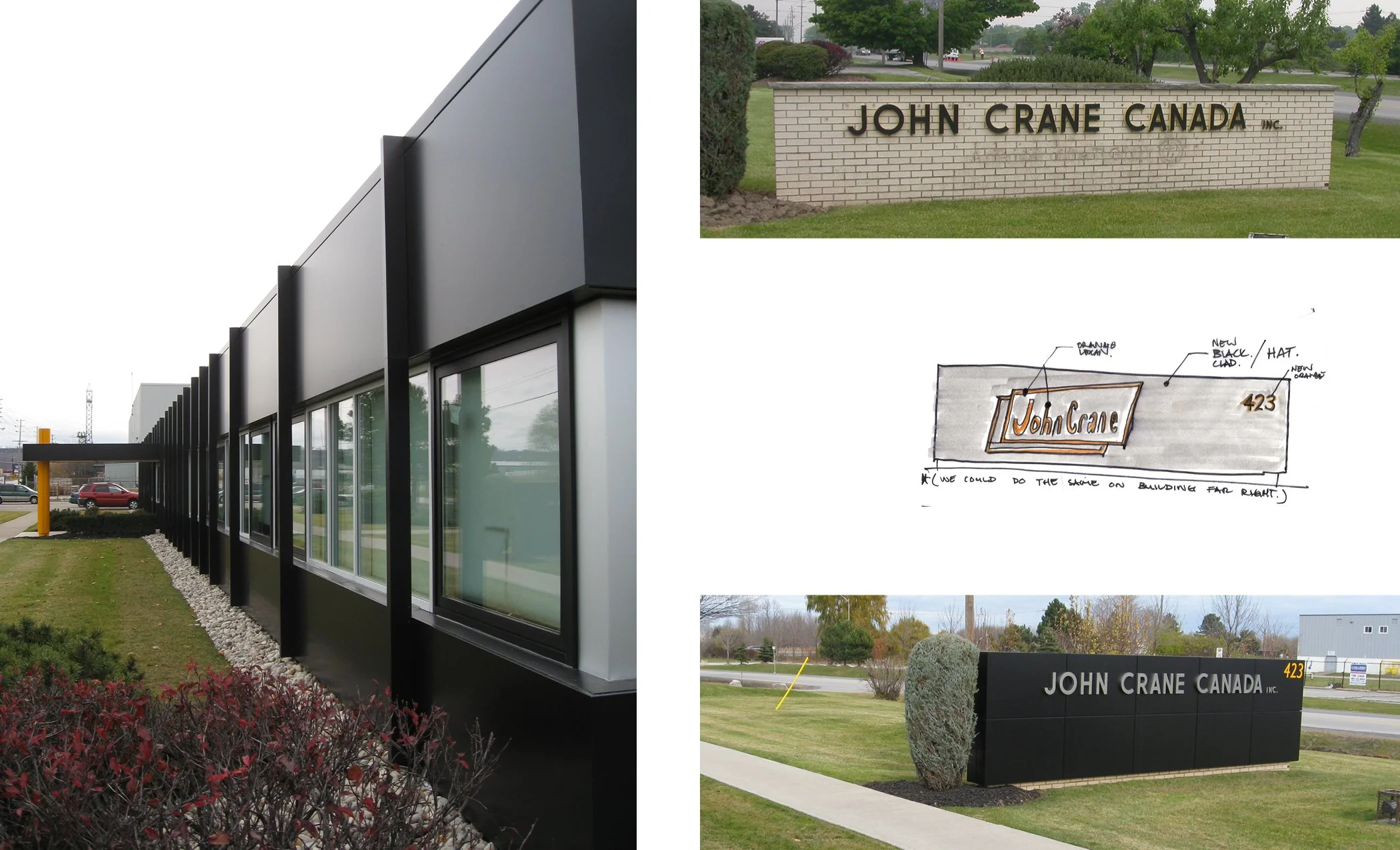 As part of the 60th Anniversary of John Crane Canada, improvements to the building envelope performance were made to revitalize their corporate headquarters. An updated aesthetic - mies-ian influence - using vertical extrusions organized indicate operable window component reinforced by fenestration colour (operable black, inseparable anodized aluminum)